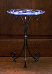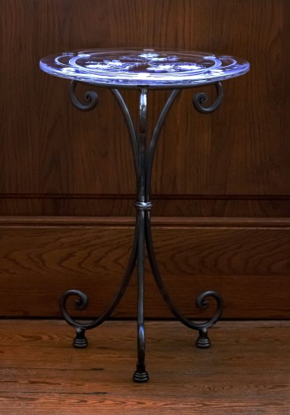 Crystal coffee table with flowers and iron base. It takes 10 days of work . Size: d37cm, h55cm